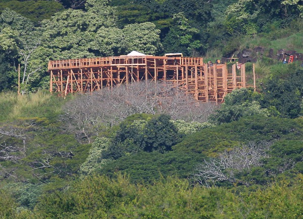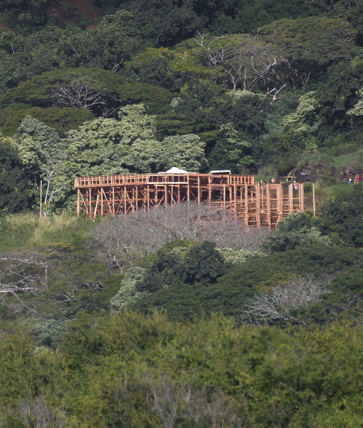 Přípravy natáčení Jurského světa jsou sice v plném proudu (a to jak na tropickém ostrově Oahu na Havaji, tak v Louisianě), leč na fotkách stále není vidět nic konkrétního. Na internetu se navíc objevily první spekulace, co že se to vlastně staví. Mohla by to být klidně část nového návštěvnického centra, přistávací plocha pro helikoptéru či něco jako akvárium? Sada deseti fotek, je oproti těm minulým dost podobná. Jedna věc je na nich ale patrná - Stavba se poměrně rychle zvětšuje, což značí, že dělníci opravdu nezahálejí.