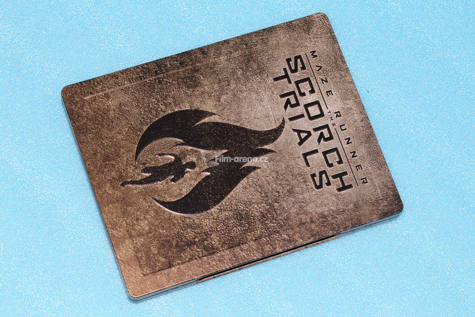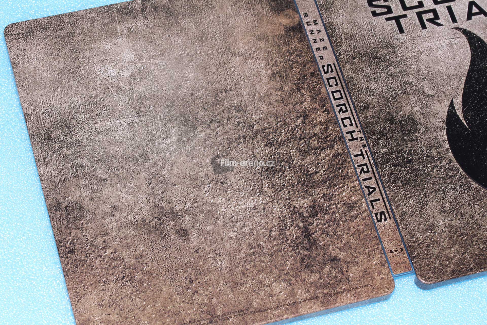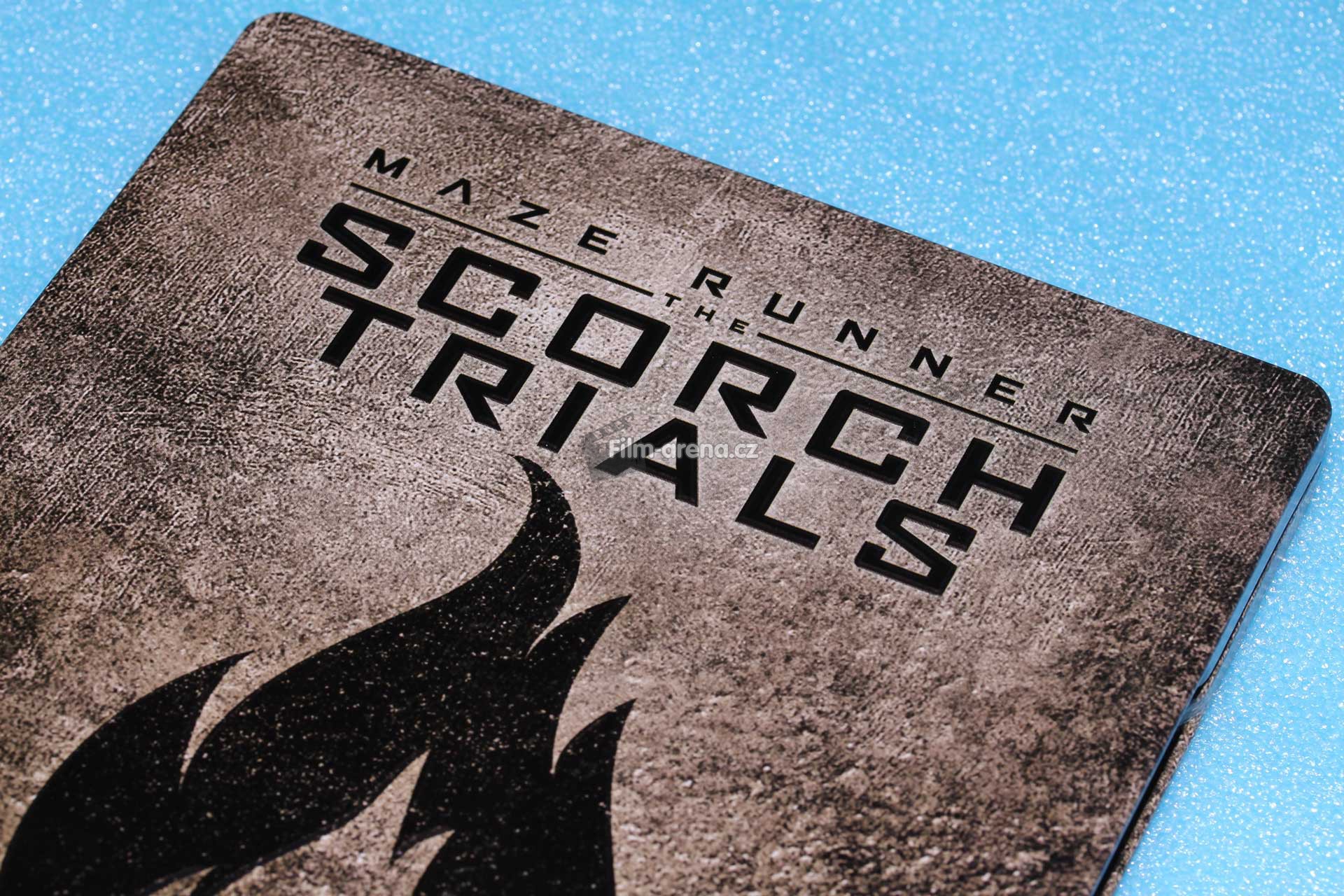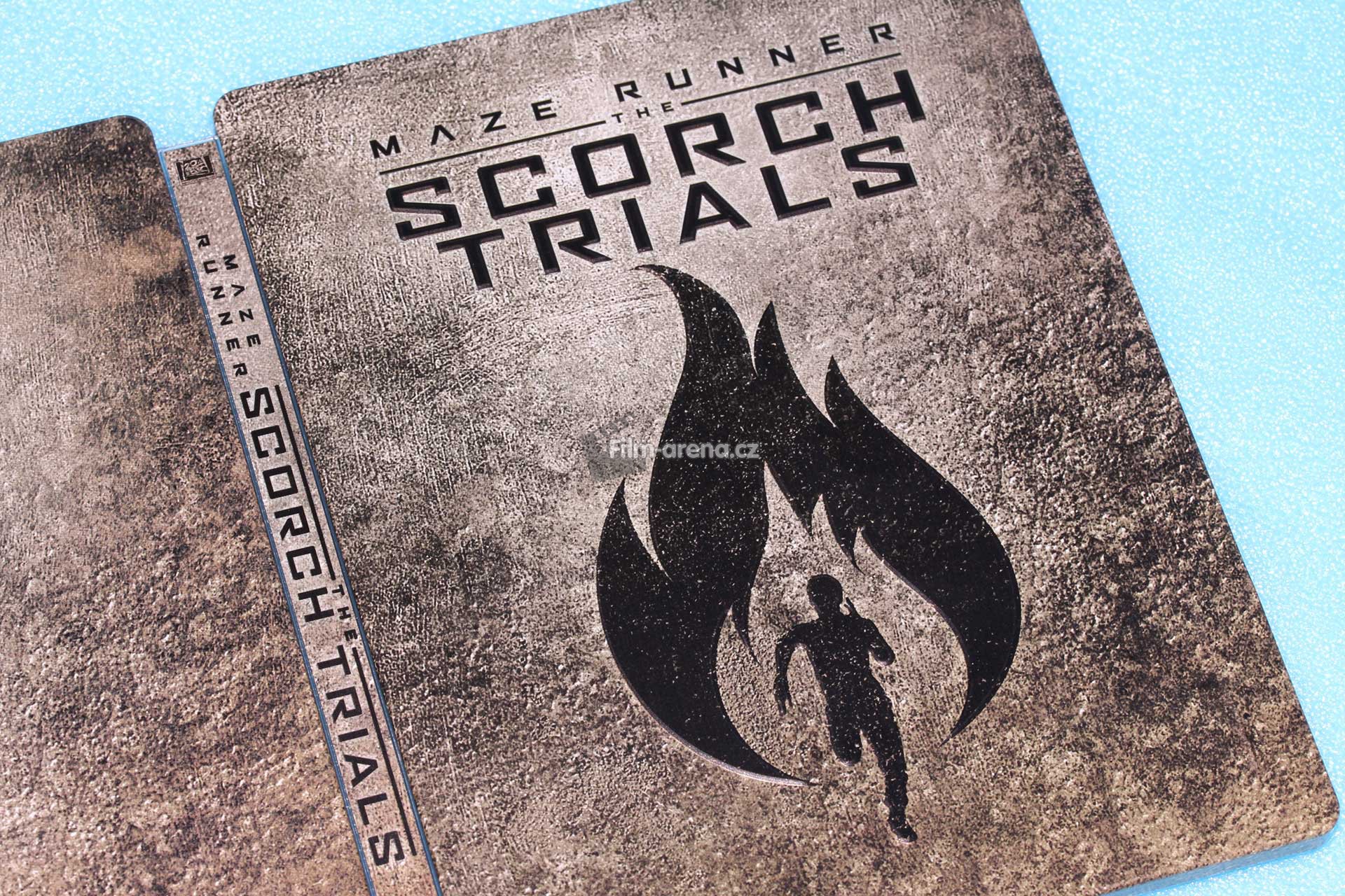 Pokud se ovšem na tento plech podíváte pod různými úhly, tak Vám z něj vystoupí podtitul filmu Scorch Trials a logo, které je dominantou přední strany Steelbooku. Tyto embossované prvky jsou velmi povedené a nejvíce zřejmé po přejetí prstem.