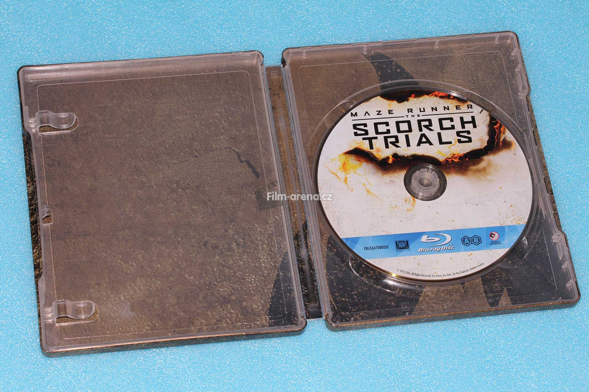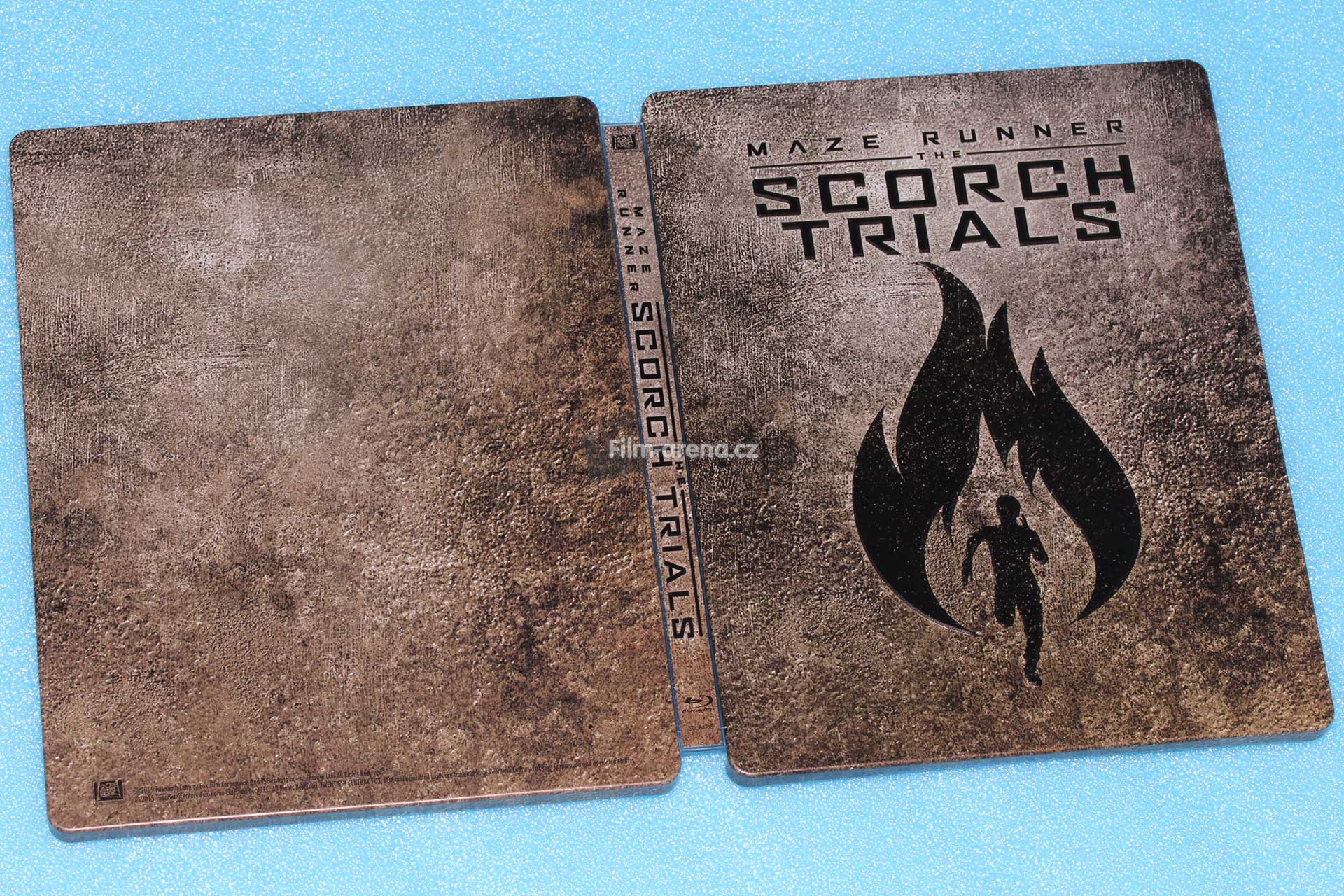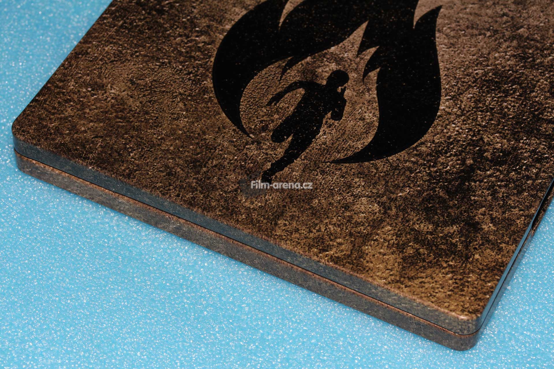 Na hřbetu najdeme také originální název filmu a dvě loga. Jedno patří studiu 20th Century Fox a druhé formátu Blu-ray. Zadní stranu tvoří stejné pozadí, které najdeme na přední části a dole je malým písmem zmínka o autorských právech. Vnitřní artwork má prakticky identický motiv, ale pod Blu-ray diskem se ukrývá hnědé logo ohně. Samotný Blu-ray disk je ve světlých barvách a "rozzařuje" vnitřek tohoto Steelbooku.