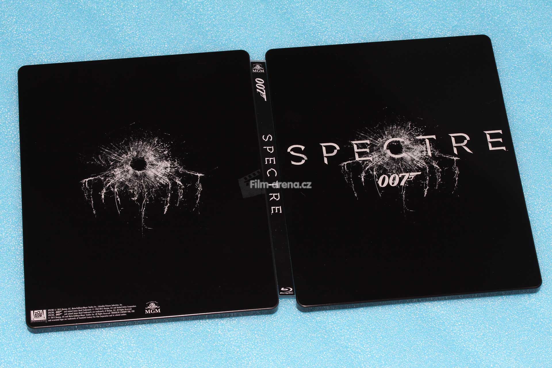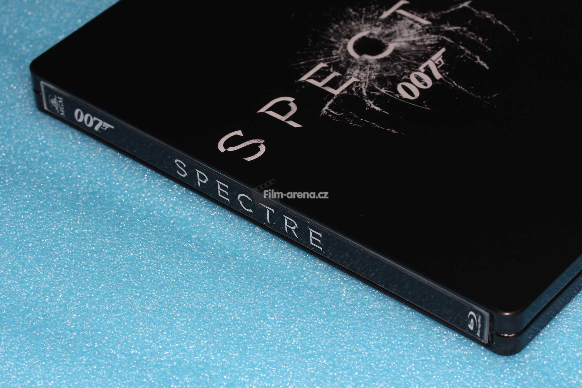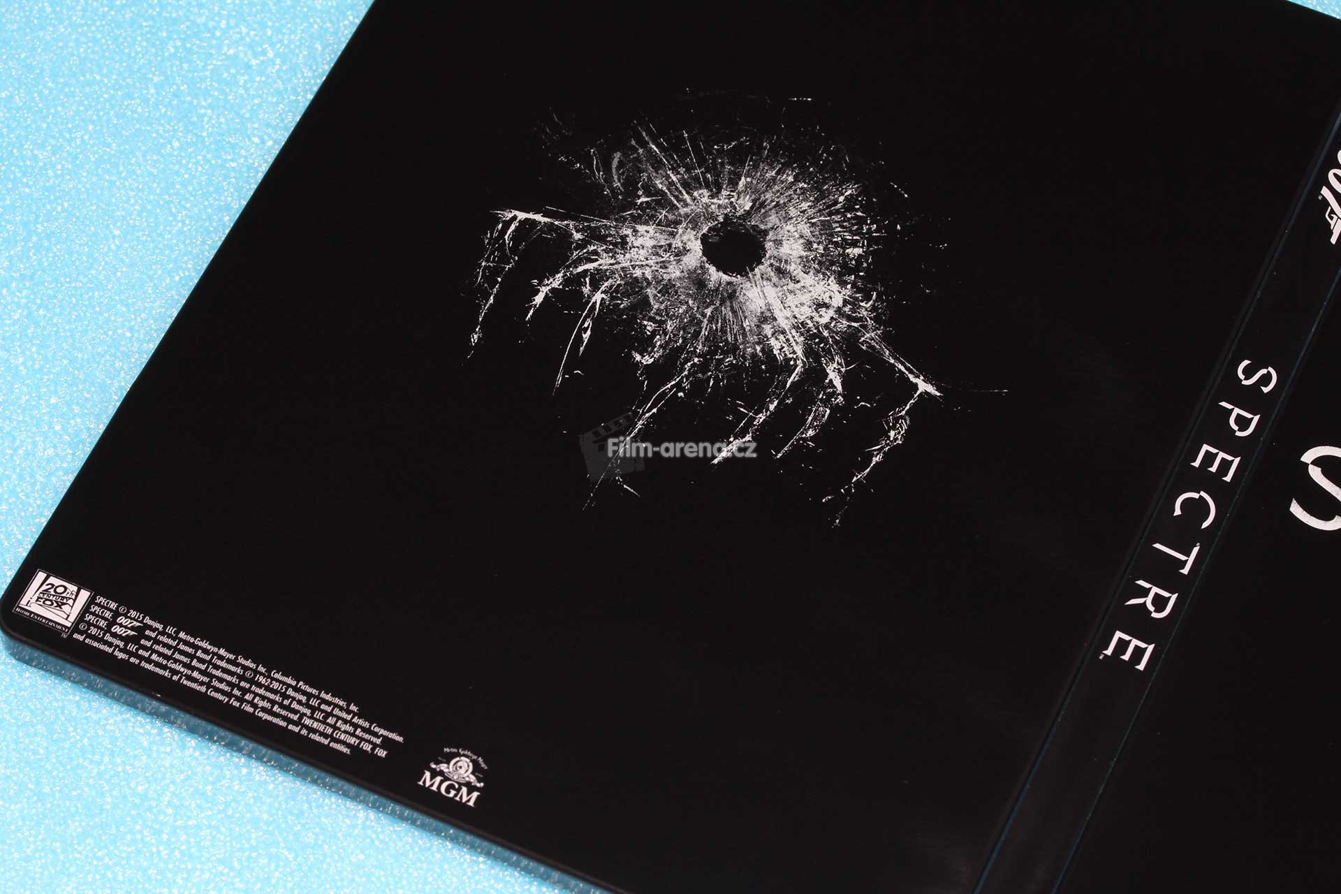 Na hřebetu najdeme již tradičně logo studia a Blu-ray formátu. Kromě názvu filmu je zde také číslovka 007 s logem pistole na jeho konci, což je tradiční označení na bondovkách a najdete ho i na Steelboocích předchozích filmů.