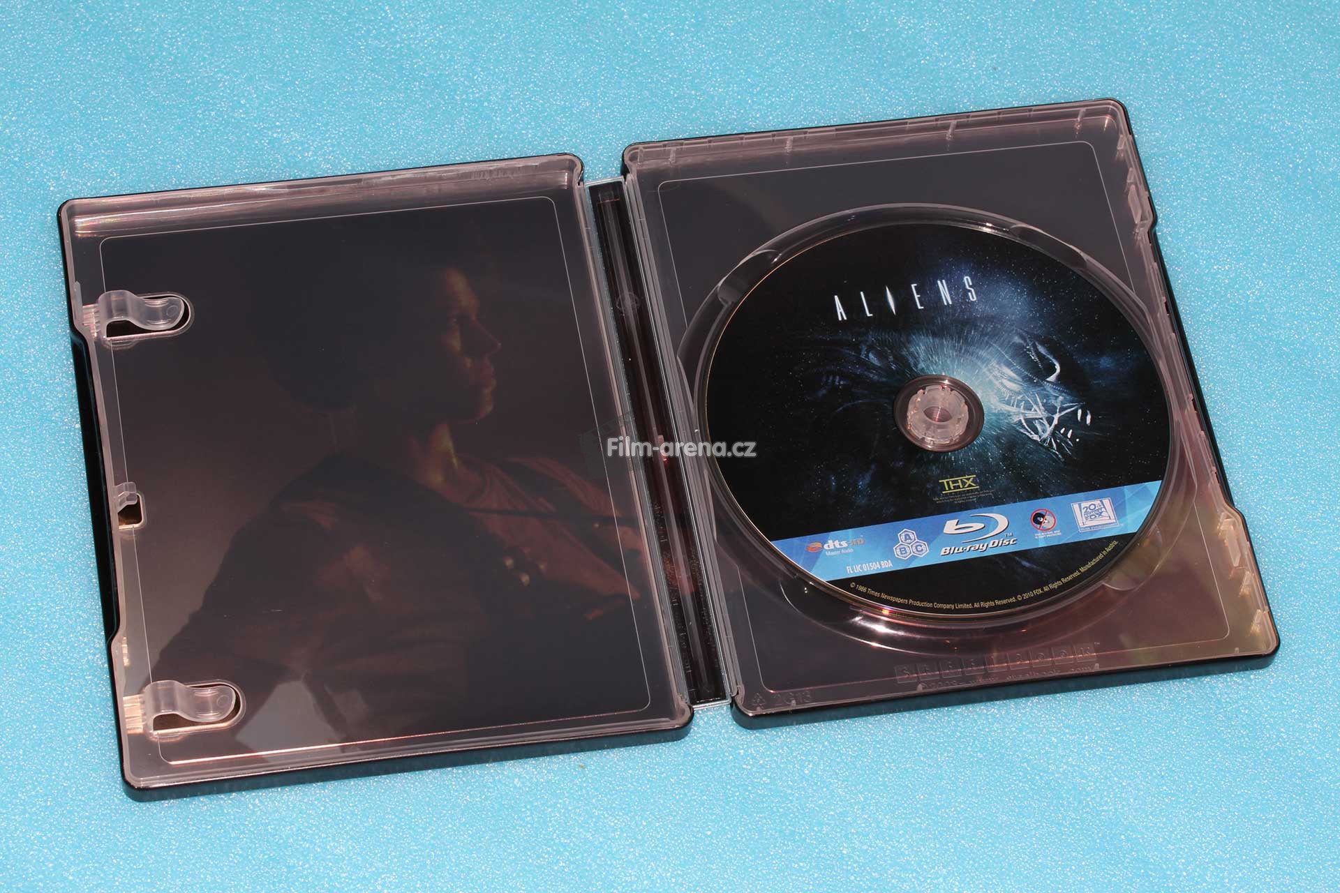 Na vnitřním artworku je Ripleyová s plamenometem v ruce. Ten na pravé straně zakrývá Blu-ray disk, jehož potisk vychází z motivu přední strany Steelbooku. Po designové stránce povedený kousek, jehož grafické motivy a provedení k sobě ladí.
