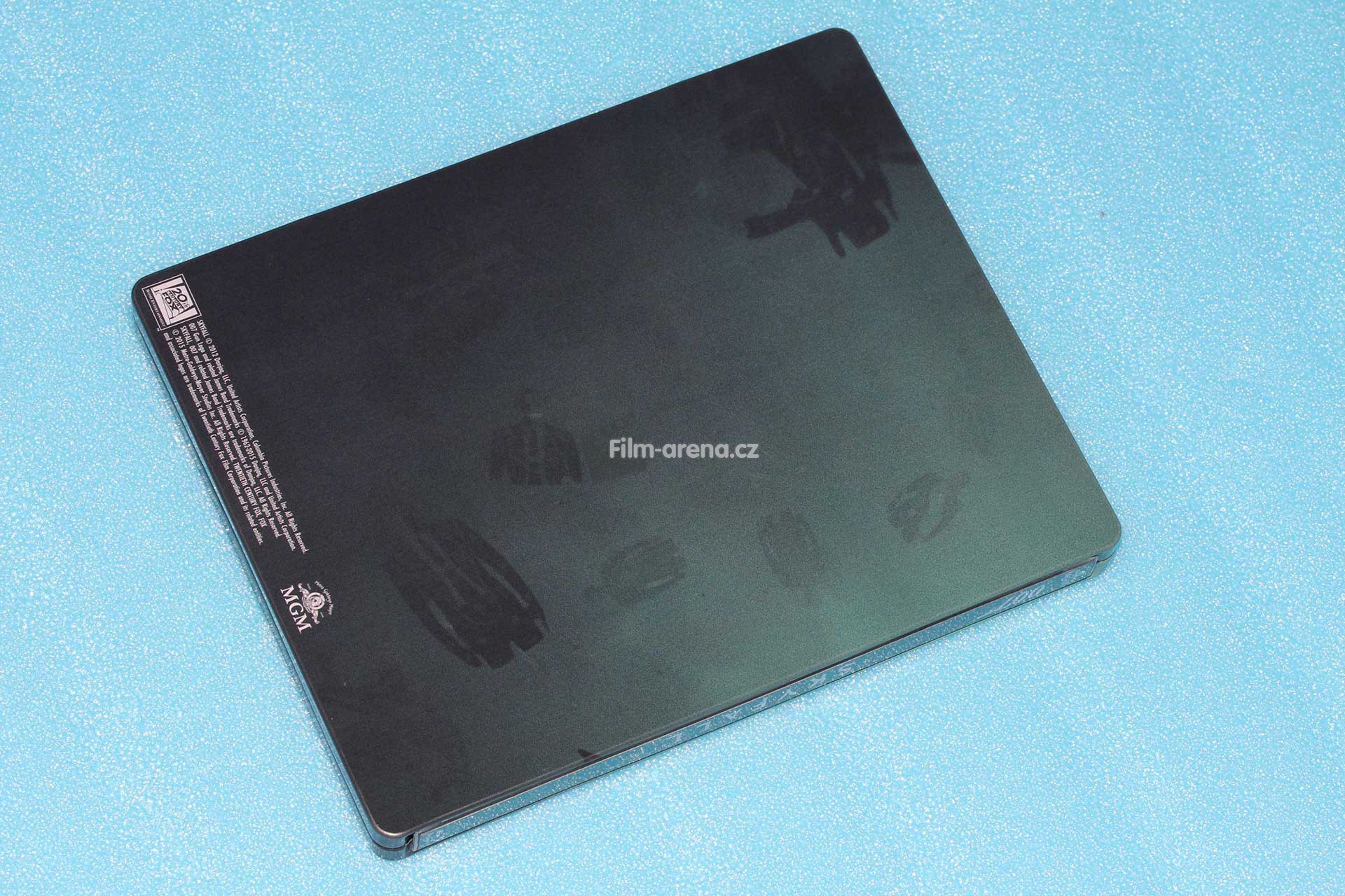 Samotný plech, stejně jako všechny ostatní v této sérii, využívá motiv úvodní hhudební sekvenci - a tak i tento steelbook - provází motiv smrti a poražení. Přední a zadní strana je propojena v jeden nepřetržitý motiv, který je pouze lehce narušen hřbetem. Nechybí originální název snímku, který je stejně jako u všech snímků s Danielem Craigem totožný s tím českým.