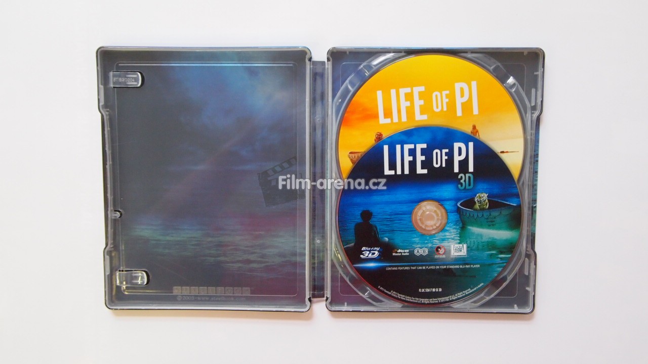 Velkým překvapením pro všechny filmové fanoušky bylo ohlášení sběratelského Steelbooku. Ten se v současné době může pochlubit jedním prvenstvím - magnetickou lentikulární kartou, která zdobí plech na přední straně. Žádný jiný Steelbook tohle na našem trhu nemá, ale kdo ví, třeba se to v budoucnu zlepší. Pí a jeho život vyšel ve Steelbooku 17. dubna 2013, a to ve dvoudiskové podobě.