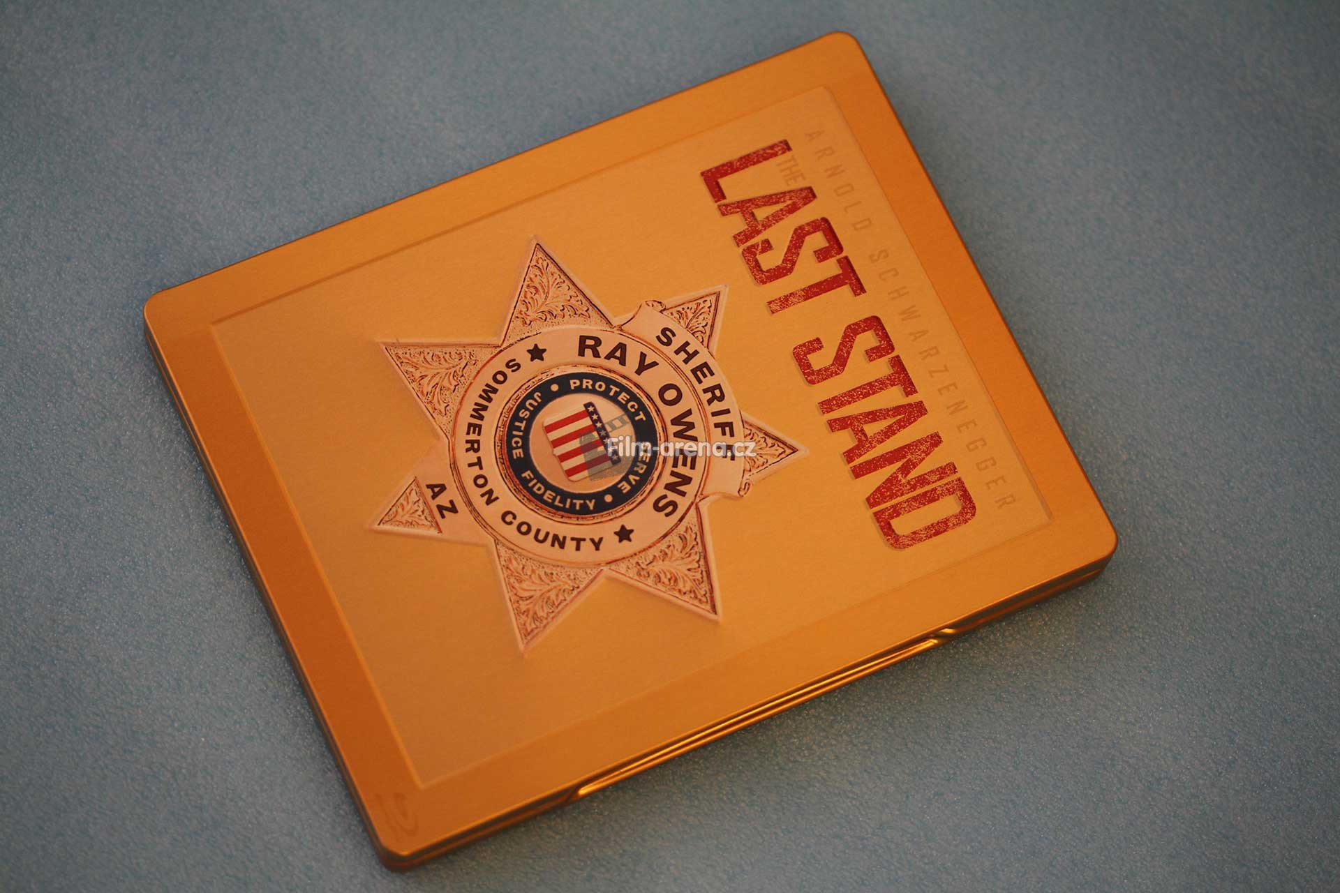 Steelbook u nás přes velkou snahu nakonec vyšel 11.12.2013 v jednodiskové podobě. Na disku kromě filmu nalezneme i 82 minut bonusového materiálu ve vysokém rozlišení 1080p a obsahujícím české titulky. Plech je kompletně zlatý, což mu dodává na eleganci a jistě přidává i na sběrateslké hodnotě. Přední strana se může pochlubit debossovaným rámečkem, který dává prostor nejen embossovanému originálnímu názvu filmu, ale hlavně odznaku v podobě šerifské hvězdy.