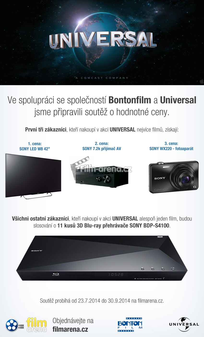 Všichni ostatní zákazníci, kteří z akce UNIVERSAL zakoupí alespoň jeden film, budou ve slosování o 11 kusů 3D Blu-ray přehrávače SONY BDP-S4100!