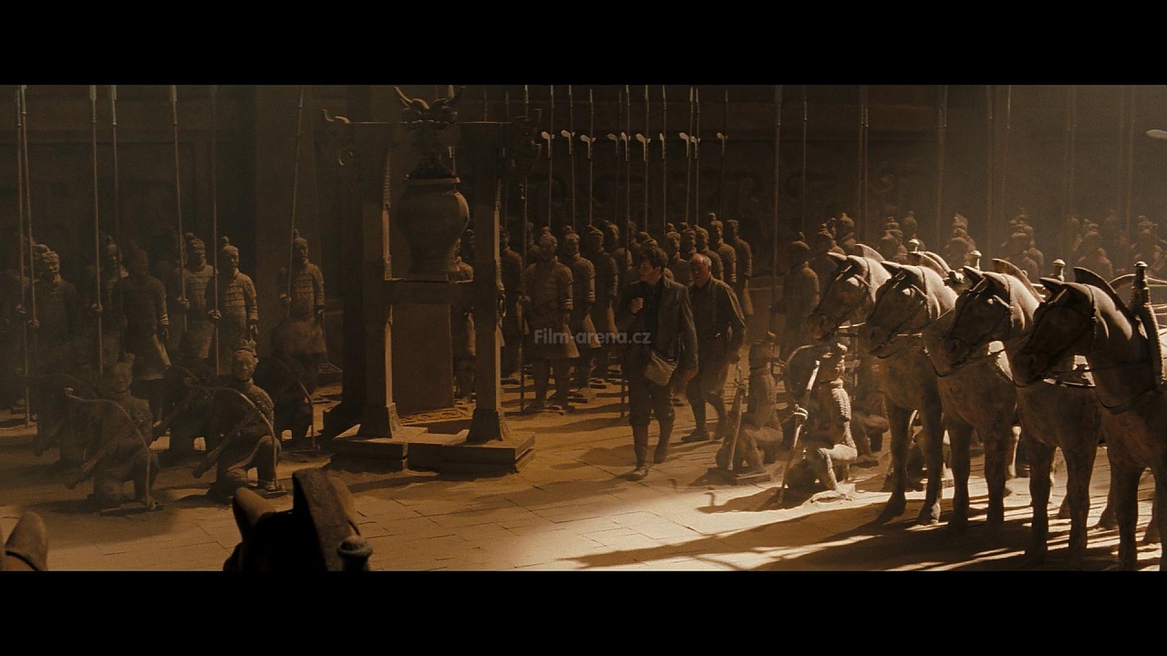 Nutno poznamenat, že hrob, v němž přebývá titulní antihrdina, co do velkoleposti strčí egyptské pyramidy hravě do kapsy. Obklopuje ho 10 tisíc příslušníků slavné terakotové armády, hliněných soch do nejmenšího detailu vykreslujících válečníky z doby před dvěma tisící lety. Hraví hollywoodští scenáristé z tohoto divu světa vytvořili ústřední zápletku příběhu. Jde prý o prokleté vojáky mocného čínského vládce (Jet Li), jež společně s jejich pánem proklela zhrzená a oklamaná čarodějka (Michelle Yeoh), kterou Dračí císař, navěky uvězněný v hliněné krustě, připravil o milence. Naneštěstí na tento neobvyklý hřbitov zavátý prachem a časem narazí archeologická výprava, jejímž členem je i syn dobrodruha Ricka O´Connella Alex (debutující Luke Ford), který je stejně zbrklý jako jeho otec. Neopatrností spustí řetězec událostí, na jejímž konci bude obživlá mumie Dračího císaře, která má jediný cíl – ovládnout celý svět. Zoufalý Alex se proto obrátí na jediné dvě bytosti, které si dokážou poradit s nemrtvými, tedy na vlastní rodiče. Na nehostinném Dálném východě ale všichni tři záhy zjistí, že zdejší mumie jsou z úplně jiné ligy, než byly ty egyptské, stejně jako nebezpečí, jimž v napínavé a zábavné filmové jízdě budou muset čelit. Stejně jako u předchozích dvou dílů, i tentokrát čekají na diváky trikové hody, které znovu o kousíček posouvají hranice nemožného. To potvrzuje i režisér Rob Cohen. „Vždycky jsem nervózní z projekcí pro šéfy studia. Po promítání Mumie byli šťastní jako blechy a říkali mi, že kdybych potřeboval zvýšit už tak obrovský rozpočet na trikové scény, stačí prý říct. To je vždycky dobrý signál,“ říká Cohen, který o navýšení pochopitelně požádal.(oficiální text distributora) < méně