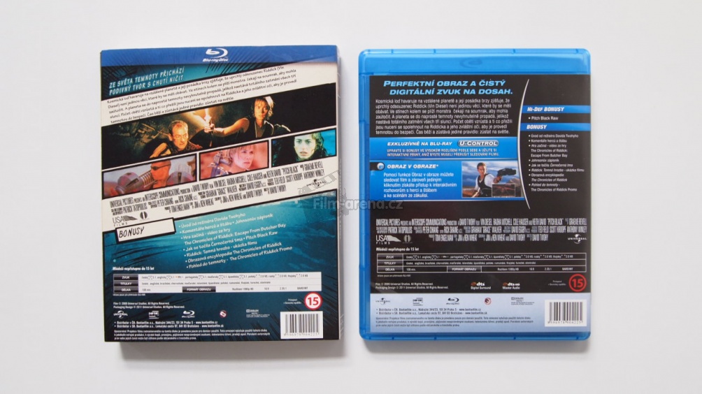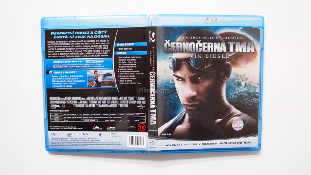 Bonusy jsou zklamání, není jich mnoho a ty co jsou příliš nestojí za zmínku - většinou se jedná spíše o "reklamu" na Chronicles of Riddick (který se tu na Blučku nedá koupit, takže mi v Riddickovské sbírce chybí). Zaujal mě snad jen namluvený Johnsons log o lovu na Riddicka, který předcházel filmu - bohužel všem bonusům chybí česká podpora, což je zklamání, zvlášť když na DVD edici prý české titulky u bonusů, které jsou stejné, jsou. Mezi bonusy lze započítat i anglické audio stopy s komentáři režiséra a Vina Diesela. Disk je navíc vybaven tzv. U-Control - po jeho aktivaci se ve filmu na místech, kde je bonusový materiál objeví logo, tento bonusový materiál lze zapnout. Jedná se hlavně o ukázky z natáčení triků a rozhovory s herci, které se ukáží formou obrazu v obraze. Bohužel se mi nepodařilo přijít na to, jak u těchto bonusů zapnout zvuk, takže si tam herci a režisér vesele něco povídají a my netušíme co, protože slyšíme audio filmu. Netvrdím, že to třeba nějak nejde, ale já jsem na to nepřišel a zkusil jsem vše.