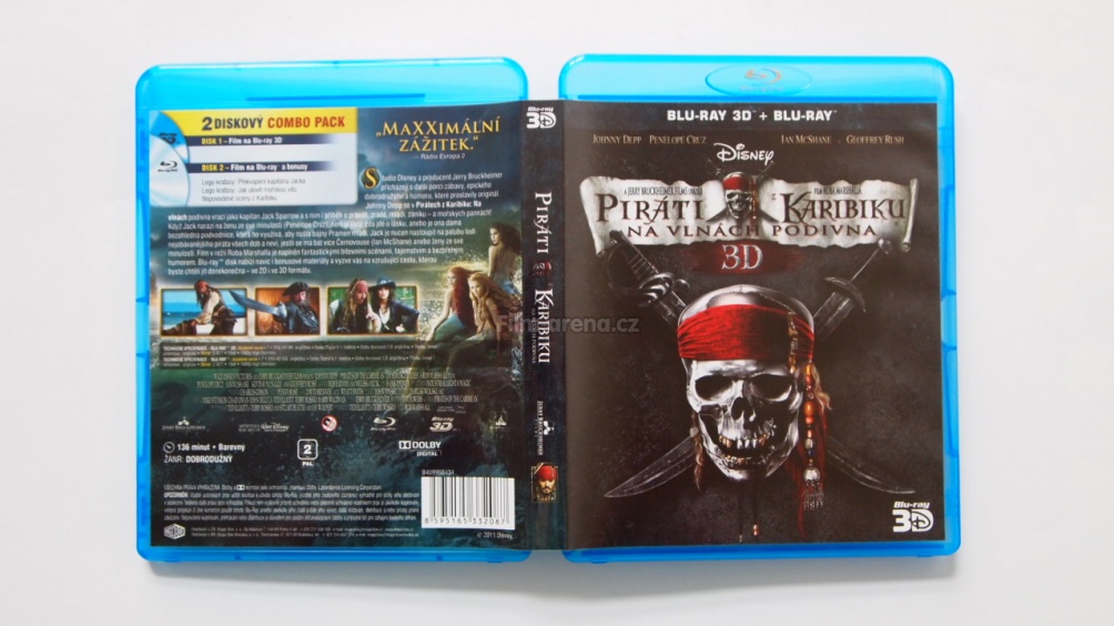 mě osobně se obal s obrázky moc líbí. Při otevření krabičky jsou dva disky. Na prvním Blu-ray je Johnny Depp. A na druhém je lebka s meči